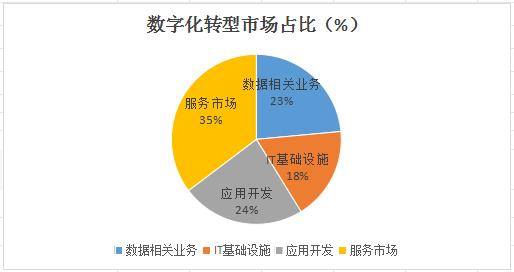 从发展前景来看,我国企业数字化转型市场空间巨大。据中国信息通信研究院数据统计,2021年我国数字化转型市场总规模达2万亿元,预计到2025年将增长至5万亿元。其中,硬件设备占比约40%,数据相关业务(包括数据分析、数据治理、数据开发、数据展现以及数据安全等)占整个市场的20%至30%的份额, IT基础设施与应用开发则分别占15%至20%。