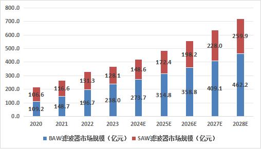 射频滤波器下游应用领域广泛,根据头豹研究院相关数据显示,2020年-2023年,中国射频滤波器市场规模(按销售额)从215.8亿元增长至366.1亿元,主要原因是过去四年中国基站建设规模持续增长以及智能手机市场渗透率进一步得到提高。导致滤波器市场呈增长趋势。