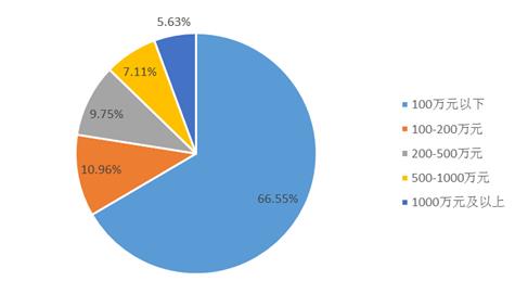 根据企查查数据,截止2022年底,我国桶装水生产制造企业数量约为2308家企业中,注册资本在100万元以下的企业数量为1536家,占比为66.55%;100-200万元(不含)的企业数量为253家,占比为10.96%;200-500万元(不含)的企业数量为225,占比为9.75%;500-1000万元(不含)的企业数量为164家,占比为7.11%;1000万元及以上的企业数量为130家,占比为5.63%。