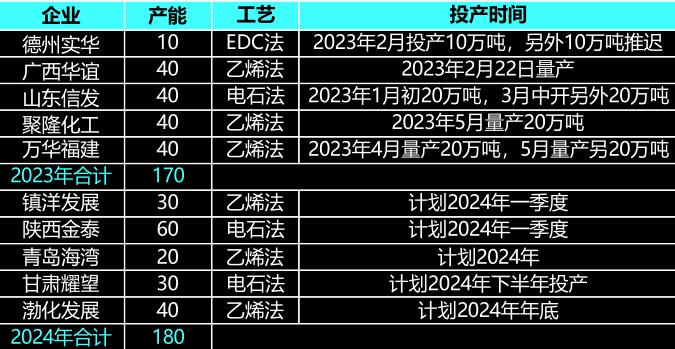 图表:PVC新装置投产情况