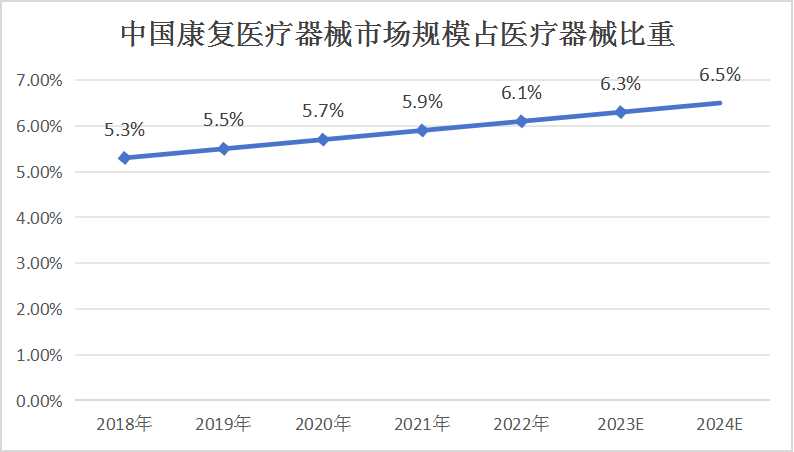 随着我国康复产业的蓬勃发展,康复医疗器械的市场规模持续扩大,其在整体医疗器械市场的比重也在逐步提升。据中研产业研究院《2024-2029年中国康复器具行业深度调研与发展趋势预测报告》显示,2022年中国康复医疗器械市场规模占整体医疗器械市场规模的比重已经达到了6.1%。这一比重预计将继续增长,报告还预测,到2023年,这一比重将提升至6.3%,到2024年将进一步提升至6.5%。