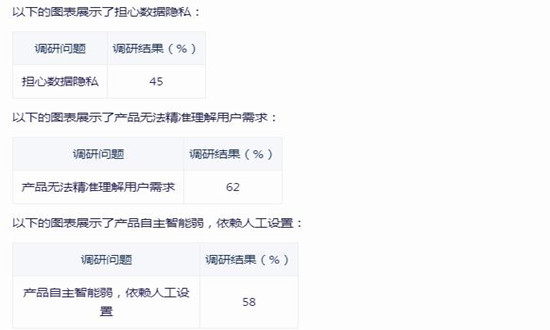 据唯奥体验咨询的一份调研显示,62%的智能家居消费者认为产品无法精准理解用户需求,58%认为产品自主智能弱,依赖人工设置。据智标委智慧住区分委会数据,45%尚未使用智能家居的消费者担心数据隐私。