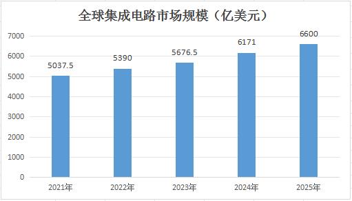集成电路行业是当前全球电子信息产业的重要组成部分,具有广泛的应用领域和巨大的市场潜力。近年来,全球集成电路市场规模持续扩大,增长速度较快。据统计,2019年全球集成电路市场规模达到了4400亿美元左右,预计到2025年将增长到6600亿美元左右,年均复合增长率约为7