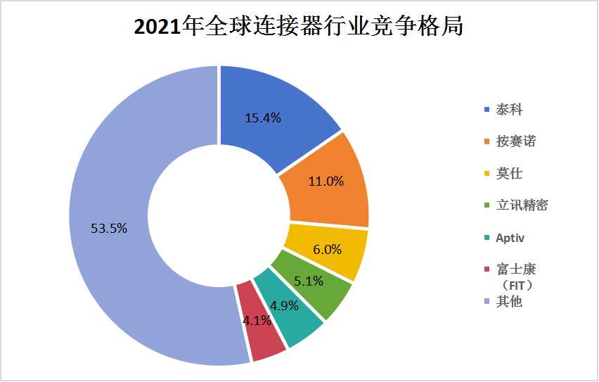 自1980年以来,全球连接器行业的竞争格局发生了显著变化。前十大连接器供应商的市场份额持续上升,从1980年的38.0%增长至2021年的55%,在这一过程中,欧美和日本的连接器跨国企业凭借其强大的研发实力和丰富的技术经验,逐渐在全球高性能专业型连接器市场中占据了主导地位。