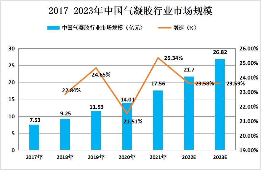 近年来,中国气凝胶市场规模持续保持增长态势。据中研普华产业研究院发布的《2024-2029年气凝胶产业现状及未来发展趋势分析报告》显示,2021年我国气凝胶市场规模已达到17.56亿元,并且近五年的年均复合增长率高达23.58%。这一数据充分证明了气凝胶在国内市场的受欢迎程度以及其在多个领域的广泛应用。