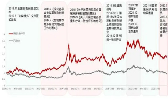 医药板块是A股长期走势较为稳健的板块之一,近20年在31个申万一级行业中收益率位居第五。2010年以来医药行业经历了两轮较为完整的牛市行情,具体到二级板块来看,每一轮牛市行情由于驱动和催化因素的不同,引领板块向上的动能亦有不同,但政策对于行业影响始终贯穿。国内医药政策调整概括来讲是医药、医疗、医保等医药卫生体制基本秩序的构建及改革。