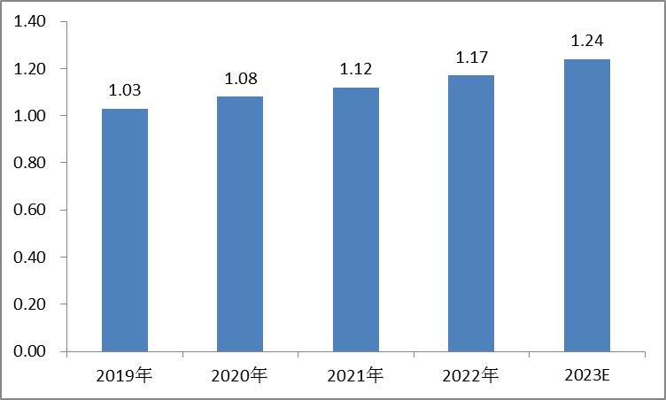 从近年来我国电线电缆行业市场规模情况来看,整体呈现稳步上升的态势,2019年我国电线电缆行业市场规模为1.03万亿,而2022年我国电线电缆行业市场规模达到了1.17万亿元。预计2023年我国电线电缆行业市场规模将达到1.24万亿元。