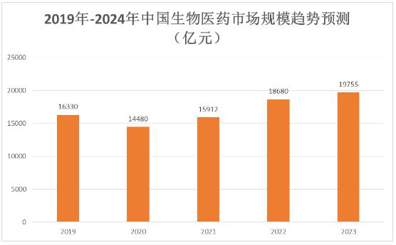 数据显示,2022年我国生物医药市场规模达18680亿元,预测到2023年我国生物医药市场规模将增至19755亿元,2024年市场规模有望超2万亿元。