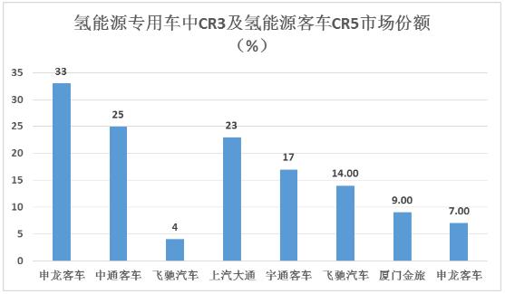 氢能源专用车中CR3及氢能源客车CR5市场份额
