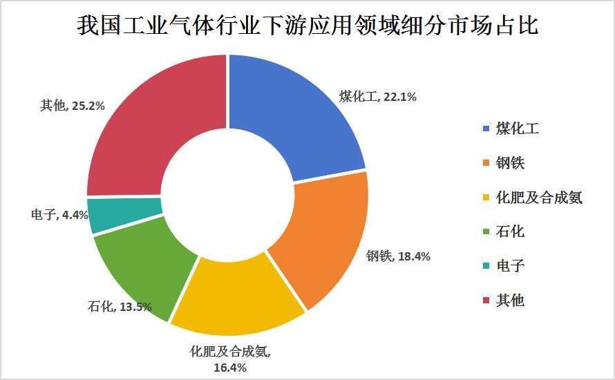 图表:我国工业气体行业下游应用领域细分市场占比