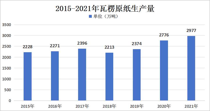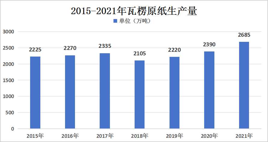 图表:2015-2021年瓦楞原纸生产量