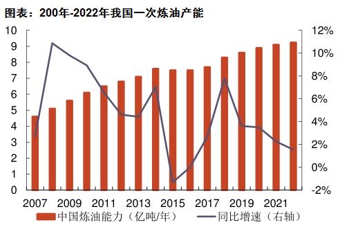 图表:200年-2022年我国一次炼油产能