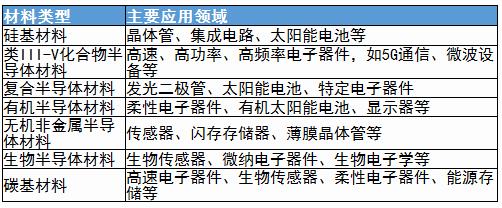 半导体材料不同材料类型及其主要应用领域