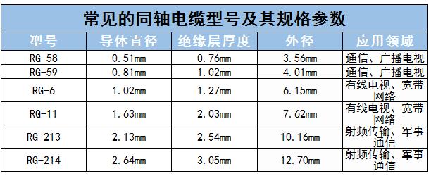 常见的同轴电缆型号及其规格参数