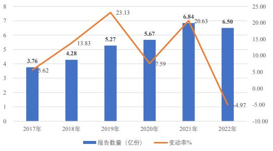 图表:2017-2022年我国检验检测行业出具报告数量