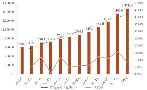 宠物食品是饲养宠物的刚性需求,贯穿宠物整个生命周期,具有复购性高、价格敏感性低、黏性强的特点。宠物食品市场是宠物行业最大的细分市场,也最先受益于宠物经济的发展。据Statista数据,2023年全球宠物食品市场规模约为1,473.00亿美元,2012年至2023年,全球宠物食品市场年均复合增长率约为8.50%。