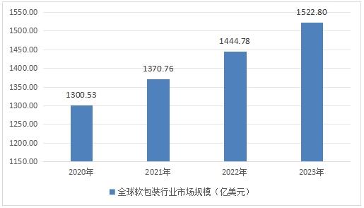 图表:2020-2023年全球软包装行业市场规模