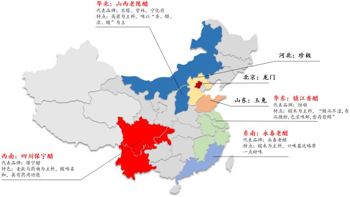 根据中研普华研究院撰写的《2023-2028年中国食醋行业深度分析与发展前景预测报告》显示:当前我国已形成“四大名醋”:山西老陈醋、镇江香醋、四川保宁醋及福建永春老醋;山西区域盛产高粱且消费者口味偏重,老陈醋因此脱颖而出;华东地区水稻丰盛且消费者饮食清淡,因此镇江香醋诞生于此;西南地区丰产小麦,因此以麦麸及药曲为主料、酸甜兼具药用价值的保宁醋在此享誉;东南地区相比于其他地区而言纬度更低气候更偏炎热潮湿,因此口味寡淡略带一点甜味的醋更具市场,于是永春老醋成为不二之选。