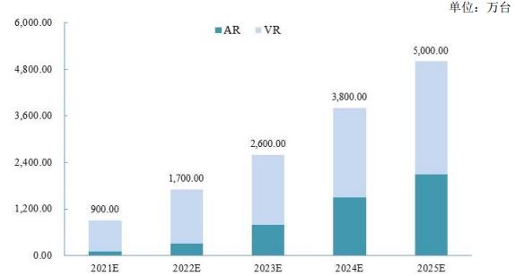 根据IDC预测数据,AR/VR头显设备出货量在2021年至2025年间将以53.53%的年复合增长率增长,由2021年的900万台增长至2025年的5,000万台,其中,VR、AR头显出货量在2021年和2025年分别为800万台和100万台、2,900万台和2,100万台。AR/VR市场需求的增长,将为