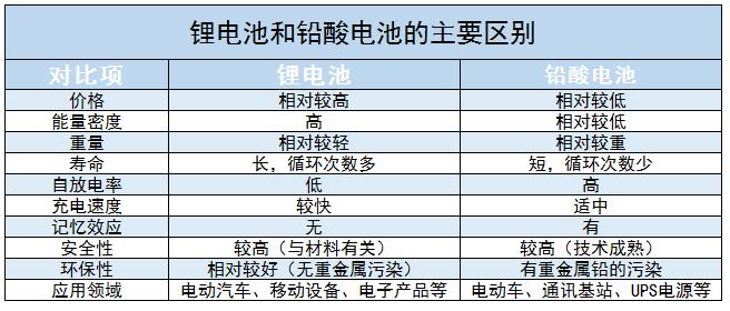 锂电池和铅酸电池的主要区别