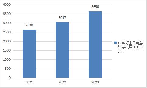 图表:2021-2023年中国海上风电累计装机量(单位:万千瓦)