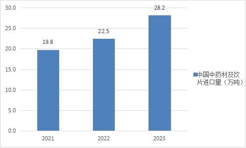 图表:2021-2023年中国中药材及饮片进口量(单位:万吨)
