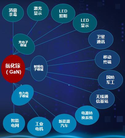 氮化镓作为第三代半导体材料,有更高的禁带宽度,是迄今理论上电光、光电转换效率最高的材料体系,下游应用包括微波射频器件(通信基站等),电力电子器件(电源等),光电器件(LED照明、激光等)。