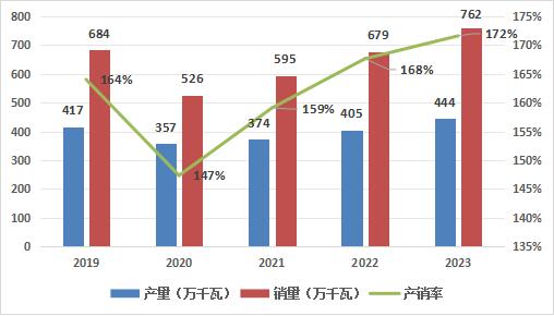 图1:2019-2023年中国燃气轮机产销量情况