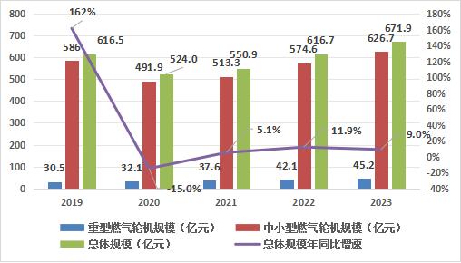 图2:2019-2023年中国不同类型燃气轮机市场规模情况
