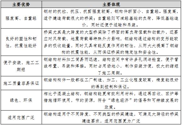 在桥梁建筑工程中,相较于传统的混凝土、钢筋混凝土或者预应力钢筋混凝土等建筑材质,桥梁钢结构具有诸多优点,主要体现在: