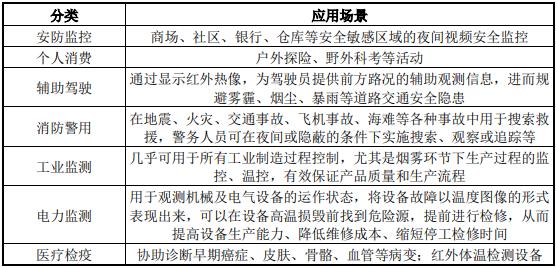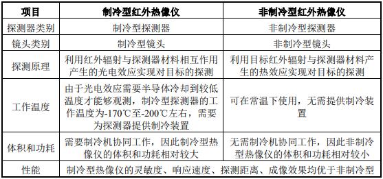 制冷型红外产品具有灵敏度高、响应速度快、探测距离远等优势,但由于价格相对昂贵,主要被用于周界安全、海岸监视、机载、舰载、弹载、星载应用等对性能要求较高的高端军用领域。非制冷型红外产品的性能相对弱于制冷型红外产品,但其具有体积小、功耗低且价格较低的特点,因此主要用于轻武器瞄具、单兵装备等对性价比和便携性要求较高的领域。