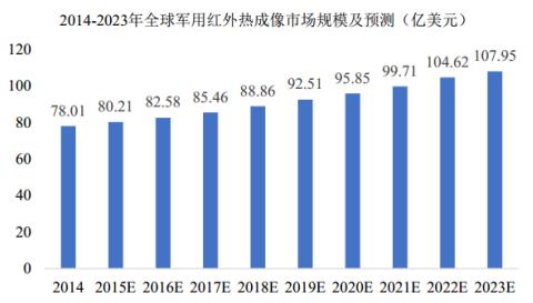 2014-2023年全球军用红外热成像市场规模及预测(亿美元)