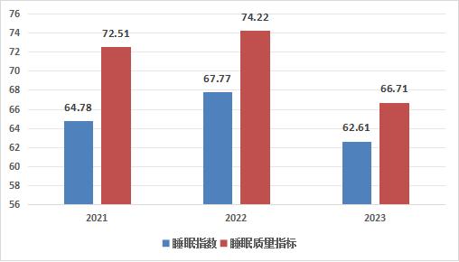 图:2021-2023年中国睡眠指数及睡眠质量指标