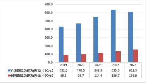 图:2019-2023年全球及中国掩膜版行业市场规模情况