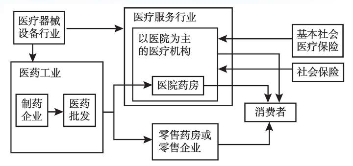 医疗健康产业链环节包括有医疗服务、医药产业、医疗器械等。