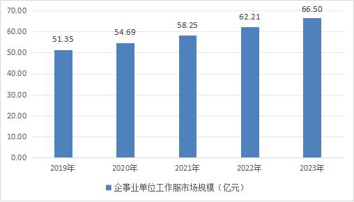 2019年企事业单位工作服市场规模为51.35亿元,至2023年,企事业单位工作服市场规模达到66.5亿元。