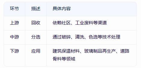 碎玻璃产业链涵盖回收、分选、加工、应用四大环节。上游回收端依赖社区、工业废料等渠道,中游通过破碎、清洗、色选等技术处理,下游则应用于建筑保温材料、玻璃制品再生产、道路骨料等领域。中国碎玻璃产能主要集中在华东、华南及华北地区,其中华东地区凭借发达的制造业基础,占据全国40%以上的市场份额。头部企业通过自建回收网络与智能化分选设备,逐步形成区域垄断优势。