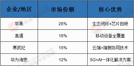 表2:2023年全球端侧AI设备市场竞争格局