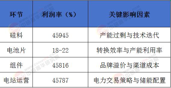 产业链利润再分配:上游硅料价格波动趋缓,中游电池片技术(如TOPCon、HJT)成为降本核心,下游电站运营利润率受市场化冲击最大。