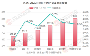 表1:2019-2024年中国牛奶产量及增速