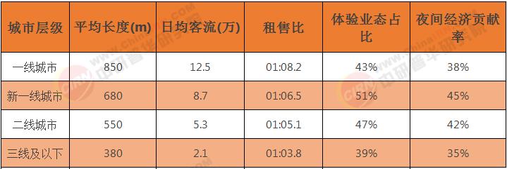 表1:2024年各线城市特色商业街核心指标对比
