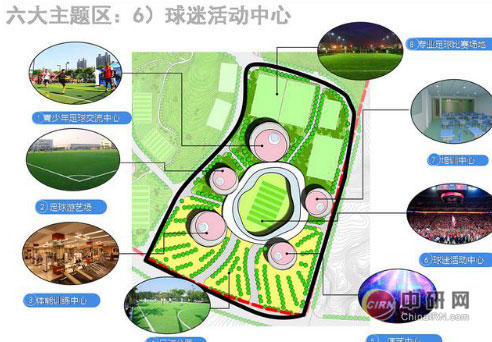 集世界足球文化、世界足球强国风情建筑、足球赛事、青训、夏令营、球迷文化活动、休闲娱乐、体育运动、康体服务等为一体,打造“全生态足球小镇”,建设中将对小镇内原有的建筑进行改造,也将增加扩建建筑,而且还将建有20个足球场,11人制10个、5人制10个,一个规模5万人的多功能球迷活动中心及广场等景观配套设施。