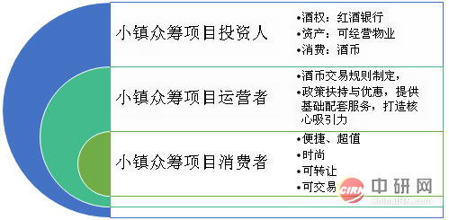 导入投资客与消费者,参与众筹小镇投资解决了三个层面的问题:参与一级土地开发、二级房产开发;参与(可经营性)物业产权购买、投资购买;参与直接消费、间接消费和延时消费。小镇投资人也将得到三重权益:资产权益(不动产 )、资本权益(股权 )、消费权益(红酒)。