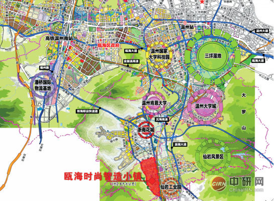 瓯海时尚智造小镇位于瓯海区仙岩街道西片,东至新104 国道,南至瑞安罗凤,西至下沈线,北至丽岙街道界线的区域内。