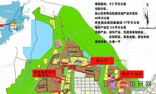 小镇共分为核心区即青岛轨道交通产业开发区、商务商业居住配套区以及产业辐射区。