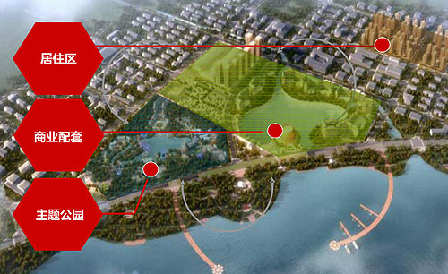 1.主题公园区:这是项目的核心区域,内部分为主题乐园区、水乐园和电影乐园三大区域。其中主题乐园区占地面积40公顷,主要开发项目包括:徽州古韵、梨园春秋、欢乐水乡、巢州古城、梦蝶仙境、淝水之战八个主题区。