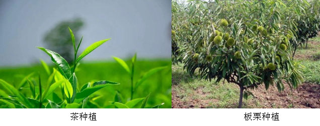 第二产业方面,围绕茶和板栗进行深加工,茶可制作茶叶,生产茶油;板栗则主要是加工成炒货。