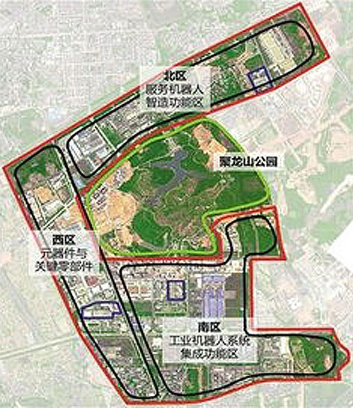 具体发展中,将倾力把机器人产业示范基地打造成国际领先、国内一流的“聚龙智谷”和分为南、北、西区的三个核心功能区。
