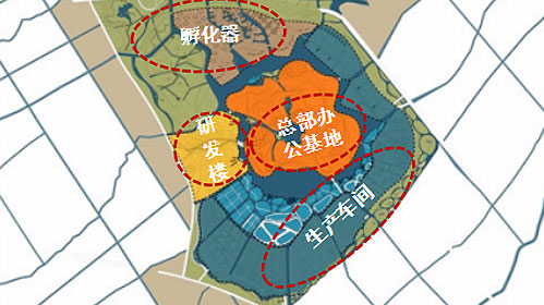 根据规划,项目在空间布局方面划分为孵化器、企业研发楼、总部办公基地、生产车间等主体功能区域。